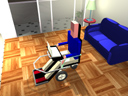 Les géométries qui entrent en compte dans la simulation physique sont habillées par défaut avec une forme de même nature disposant dune couleur (ambiante, spéculaire, diffuse ...) et dune texture. En outre lhabillage peut se faire avec un modèle de rendu 3D issu dun fichier. Au choix, la simulation affiche une solution, ou lautre , ou les 2.